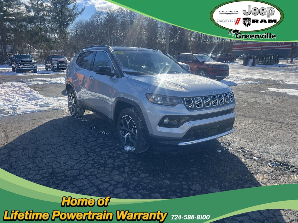 This 2026 Jeep Compass Limited has a beautiful Silver Zynith Metallic Clearcoat exterior with Black interior. This vehicle has 0 miles has been thoroughly inspected by our factory trained service technicians and has been fully reconditioned for immediate delivery.