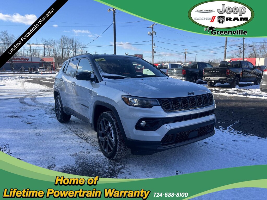 This 2026 Jeep Compass Limited Altitude has a beautiful Silver Zynith Metallic Clearcoat exterior with Black interior. This vehicle has 13 miles has been thoroughly inspected by our factory trained service technicians and has been fully reconditioned for immediate delivery.