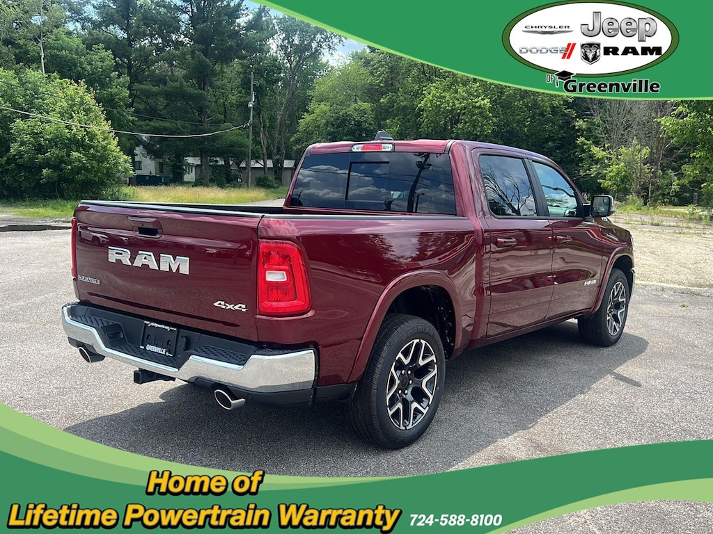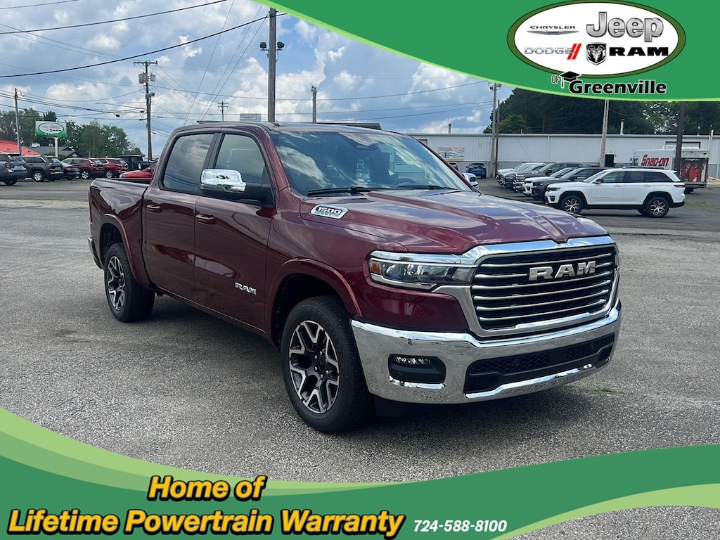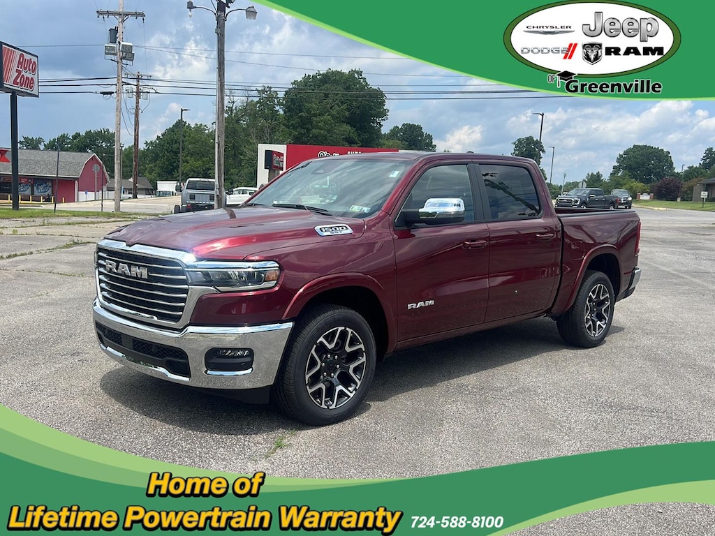 This 2025 Ram 1500 Laramie has a beautiful DELMONICO RED PEARL COAT exterior with BLACK interior. This vehicle has 10 miles has been thoroughly inspected by our factory trained service technicians and has been fully reconditioned for immediate delivery.