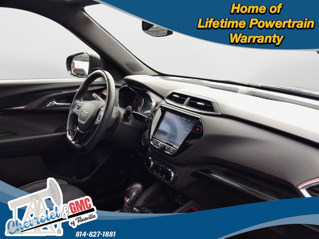 At Chevrolet and GMC of Titusville we believe that your car buying experience should be an enjoyable one. Its our goal to exceed your expectations in every way so that each and every time your family needs a car or truck, you know exactly where to go. We set out to accomplish that by staying firmly rooted in our values of integrity and professionalism in order to provide you with a truly superior customer service experience. A proud member of the Dean Auto Group, were sure youll find the quality new or used vehicle you want from the manufacturers you love! Find exactly what youre looking for at a price that makes you smile... This 2022 Chevrolet Trailblazer RS has a beautiful Mosaic Black Metallic exterior with Jet Black with Red accents interior. This vehicle has 47,607 miles has been thoroughly inspected by our factory trained service technicians and has been fully reconditioned for immediate delivery. We're happy to provide this Trailblazer's CARFAX vehicle history report upon request as well. Carfax No Accidents! Carfax One Owner! IMPORTANT PACKAGE INFORMATION Convenience Package ($520 value)Single-Zone Auto Climate Control Air ConditioningInside Rearview Auto-Dimming MirrorDriver and Front Passenger Illuminated Vanity Mirrors120-Volt Power Outlet8" Diagonal Color Touchscreen Display1 type-A and 1 type-C USB Charging-Only PortsDriver Confidence Package ($345 value)Rear Park AssistRear Cross Traffic AlertLane Change Alert with Side Blind Zone AlertTechnology Package ($1,620 value)Chevrolet Infotainment 3 Plus System RadioWireless ChargingAdaptive Cruise ControlLED Headlamps4.2" Diagonal Multi-Color Driver Info CenterHD Rear Vision CameraPreferred Equipment Group 1RSFront Bucket Seats4,409 lbs (2,000 Kgs) GVWR3.17 Axle Ratio1.3L Ecotec Turbo DOHC SIDI Engine with Variable Valve Timing9-Speed Automatic Transmission18" High Gloss Black Machined Aluminum225/55R18 All-Season BW TiresCloth with Leatherette Seat TrimHeated Steering Wheel Safety and Security Forward collision mitigation - Forward thinking. You look away for just a second and suddenly the vehicle in front of you has stopped. That's when the forward collision mitigation system comes to life. When it senses an impending impact, it will activate a combination of features to help prevent or reduce the severity of an accident. Forward collision mitigation is always looking ahead. Pedestrian impact prevention - An extra step toward safety. Pedestrians don't always stop, look, and listen, but with Pedestrian Impact Prevention, your vehicle is equipped to better see them and avoid them. This system constantly monitors the road ahead to identify and track pedestrians. It projects that image to an interior display screen, AND should an impact become likely, Pedestrian impact prevention takes steps to avoid a collision.Technology and Telematics Apple CarPlay/Android Auto smart device wireless mirroring Wireless Apple CarPlay/Wireless Android Auto smart device wireless mirroring Mobile hotspot - WiFi on the fly. Connect your devices to the Internet through your vehicles private mobile hotspot and take the internet wherever your journey takes you, without eating up your data allowance. Find the hotspot with mobile hotspot. We value-price our vehicles to assure our customers get an easy & notable car buying experience. With every New & Pre-Owned purchase you become part of our Chevrolet and GMC of Titusville family, and being a family member has benefits: 1. Complimentary PA State Inspections for the Life of the Vehicle (dealer covers inspection fee, customer responsible for applicable sticker fees) 2. $100 gift card 3. Lifetime Powertrain Warranty (some exclusions apply) 4. Complimentary 21-point inspection and safety check for the life of the vehicle with ANY service appointment *Valid for vehicles purchased after 1/1/2025. **Offers not redeemable for cash. Due to heavily discounted market based pricing, vehicles are selling more quickly than our website updates. To verify avai