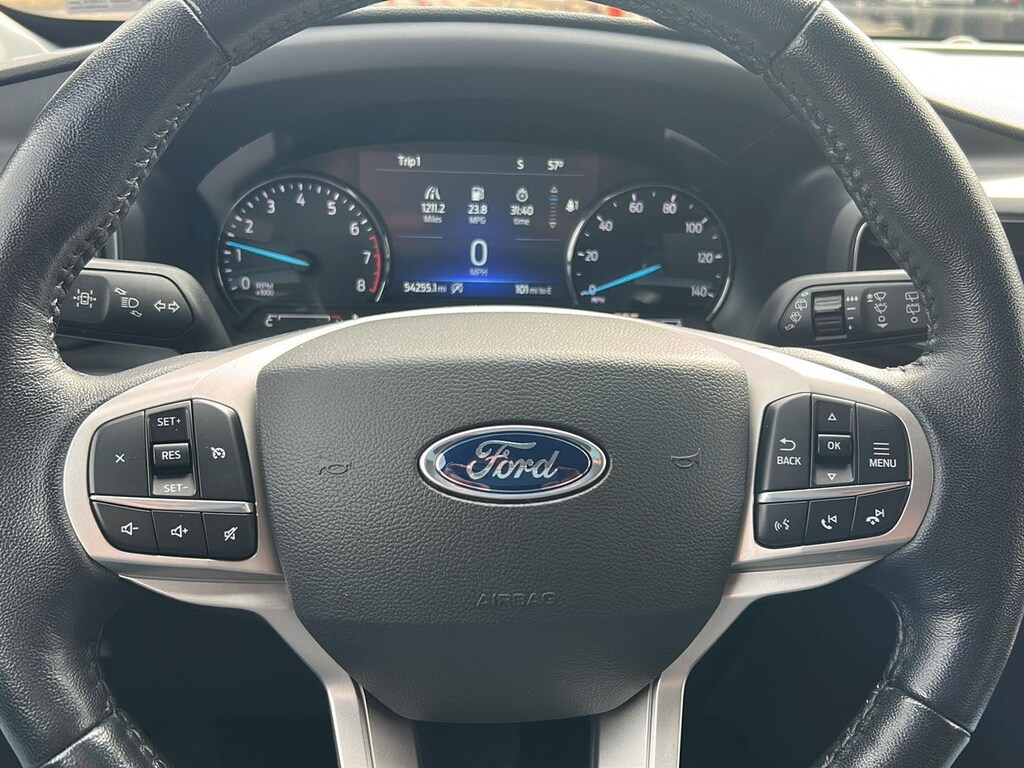 This 2022 Ford Explorer XLT has a beautiful Atlas Blue Metallic exterior with interior. This vehicle has 54,254 miles has been thoroughly inspected by our factory trained service technicians and has been fully reconditioned for immediate delivery. We're happy to provide this Explorer's CARFAX vehicle history report upon request as well.