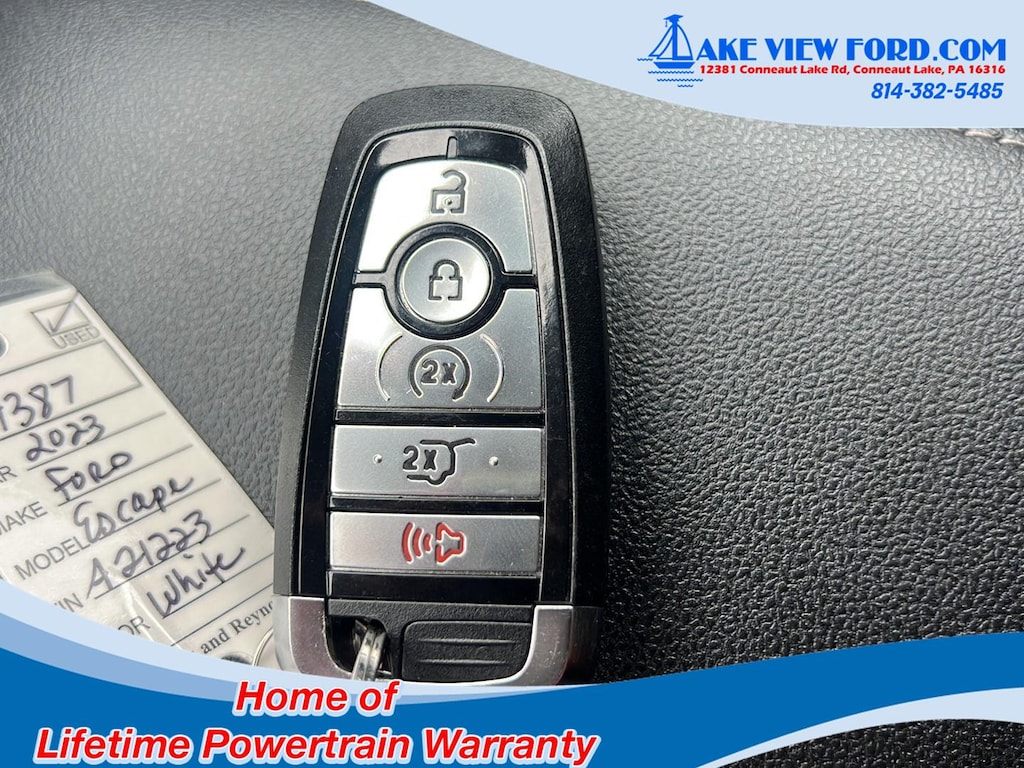 This 2023 Ford Escape Active has a beautiful Oxford White exterior with Ebony interior. This vehicle has 22,557 miles has been thoroughly inspected by our factory trained service technicians and has been fully reconditioned for immediate delivery. We're happy to provide this Escape's CARFAX vehicle history report upon request as well.