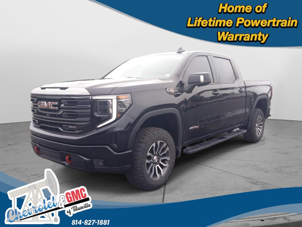 At Chevrolet and GMC of Titusville we believe that your car buying experience should be an enjoyable one. Its our goal to exceed your expectations in every way so that each and every time your family needs a car or truck, you know exactly where to go. We set out to accomplish that by staying firmly rooted in our values of integrity and professionalism in order to provide you with a truly superior customer service experience. A proud member of the Dean Auto Group, were sure youll find the quality new or used vehicle you want from the manufacturers you love! Find exactly what youre looking for at a price that makes you smile... This 2023 GMC Sierra 1500 AT4 has a beautiful Onyx Black exterior with Jet Black with Kalahari accents interior. This vehicle has 46,559 miles has been thoroughly inspected by our factory trained service technicians and has been fully reconditioned for immediate delivery. We're happy to provide this Sierra 1500's CARFAX vehicle history report upon request as well. Carfax No Accidents! Carfax One Owner! IMPORTANT PACKAGE INFORMATION AT4 Preferred Package ($850 value)Power Sliding Rear Window with Rear DefoggerAdaptive Cruise ControlUniversal Home RemotePreferred Equipment Group 4SBGMC Connected Access CapablePower Front Passenger Windows with Express Up/downPower Rear Windows with Express DownDeep-Tinted GlassPower Door LocksKeyless Open and StartPower Front Windows with Driver Express Up/downRear Wheelhouse LinersColor-Keyed Carpeting Floor CoveringFront Premium Floor Liners with Removable Carpet InsertPush Button StartRemote Vehicle Starter SystemElectric Rear-Window DefoggerFront Rainsensing WipersSpray-On Pickup Bed Liner with AT4 LogoCompassFloor-Mounted Center ConsoleAuto-Locking Rear DifferentialBlack Chrome Header and Grille Insert BarsHill Descent ControlIntegrated Trailer Brake ControllerHeavy-Duty Air FilterWireless ChargingHeated Driver and Front Outboard Passenger SeatingHeated 2nd Row Outboard Seats120-Volt Instrument Panel Power OutletVentilated Driver and Front Passenger Seats220 Amp AlternatorElectrical Steering Column LockPower Rake and Telescoping Steering Column2-Speed Transfer CaseSkid PlatesGMC Pro SafetyWireless Phone ProjectionHitch Guidance with Hitch View18" X 8.5" Machined Aluminum WheelsTrailer Camera ProvisionsPerimeter LightingSiriusXM with 360L2 Charge/data USB Ports Inside Center Console2 USB Ports2 type-C Charge-Only Rear USB PortsUltrasonic Front and Rear Park AssistOnStar and GMC Connected Services CapableIn-Vehicle Trailering AppLED Cargo Area LightingRear Cross Traffic BrakingRed Recovery HooksSteering Wheel Audio ControlsRear Pedestrian DetectionTrailer Side Blind Zone AlertPremium Bose 7-Speaker Sound SystemTheft Deterrent System (unauthorized Entry)HD Surround VisionWi-Fi Hotspot CapableOff-Road SuspensionTrailering Package Safety and Security Forward collision mitigation - Forward thinking. You look away for just a second and suddenly the vehicle in front of you has stopped. That's when the forward collision mitigation system comes to life. When it senses an impending impact, it will activate a combination of features to help prevent or reduce the severity of an accident. Forward collision mitigation is always looking ahead. Pedestrian impact prevention - An extra step toward safety. Pedestrians don't always stop, look, and listen, but with Pedestrian Impact Prevention, your vehicle is equipped to better see them and avoid them. This system constantly monitors the road ahead to identify and track pedestrians. It projects that image to an interior display screen, AND should an impact become likely, Pedestrian impact prevention takes steps to avoid a collision. Pedestrian impact prevention - An extra step toward safety. Pedestrians don't always stop, look, and listen, but with Pedestrian Impact Prevention, your vehicle is equipped to better see them and avoid them. This system constantly monitors the road ahead to identify and track pedestrians. It projects that image