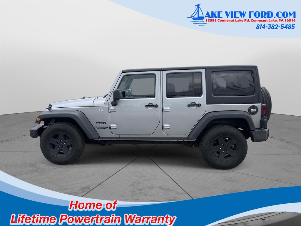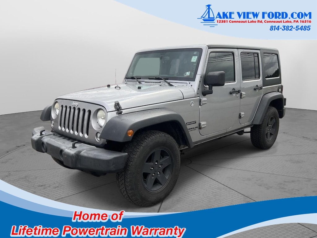 This 2014 Jeep Wrangler Unlimited Sport has a beautiful Billet Metallic Clearcoat exterior with Black interior. This vehicle has 91,387 miles has been thoroughly inspected by our factory trained service technicians and has been fully reconditioned for immediate delivery. We're happy to provide this Wrangler Unlimited's CARFAX vehicle history report upon request as well.