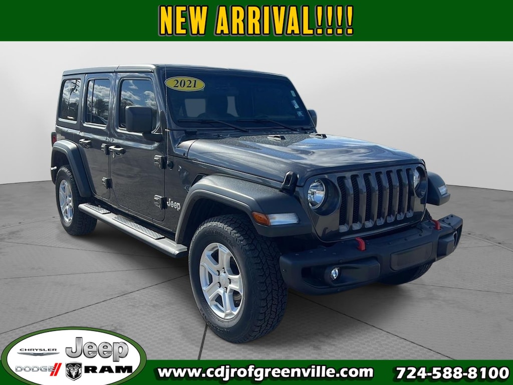 This 2021 Jeep Wrangler Unlimited Sport S has a beautiful Granite Crystal Metallic Clearcoat exterior with Black interior. This vehicle has 62,803 miles has been thoroughly inspected by our factory trained service technicians and has been fully reconditioned for immediate delivery. We're happy to provide this Wrangler's CARFAX vehicle history report upon request as well.