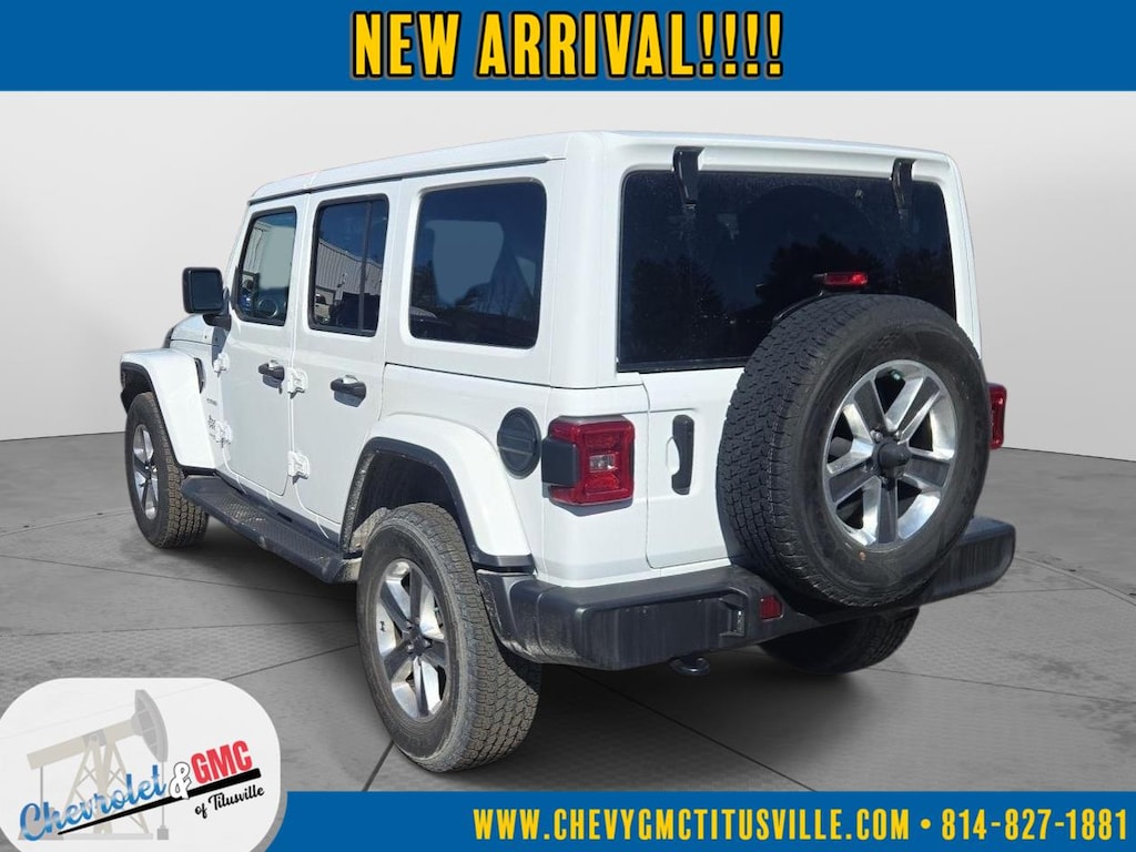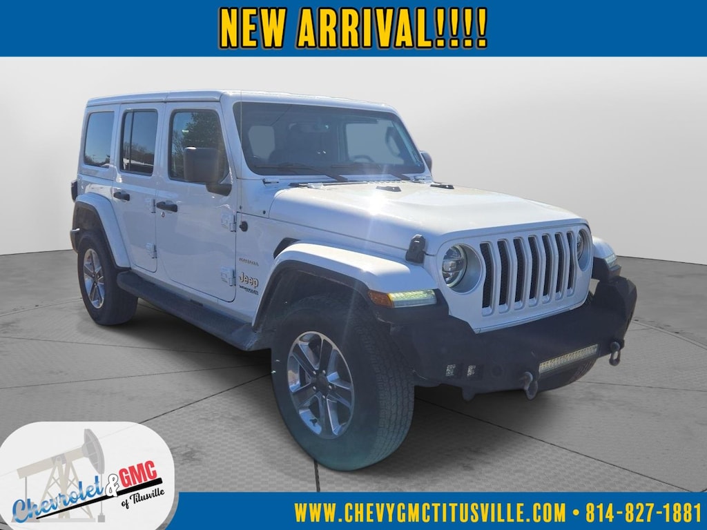 At Chevrolet and GMC of Titusville we believe that your car buying experience should be an enjoyable one. Its our goal to exceed your expectations in every way so that each and every time your family needs a car or truck, you know exactly where to go. We set out to accomplish that by staying firmly rooted in our values of integrity and professionalism in order to provide you with a truly superior customer service experience. A proud member of the Dean Auto Group, were sure youll find the quality new or used vehicle you want from the manufacturers you love! Find exactly what youre looking for at a price that makes you smile... This 2022 Jeep Wrangler Unlimited Sahara has a beautiful Bright White Clearcoat exterior with Black interior. This vehicle has 29,650 miles has been thoroughly inspected by our factory trained service technicians and has been fully reconditioned for immediate delivery. We're happy to provide this Wrangler's CARFAX vehicle history report upon request as well. Carfax No Accidents! Carfax One Owner! IMPORTANT PACKAGE INFORMATION Cold Weather Group ($1,195 value)Heated Front SeatsHeated Steering Wheel255/70R18 All-Terrain TiresGoodyear Brand TiresRemote Start SystemQuick Order Package 23GQuick Order Package 24G (disc)LED Lighting Group ($1,595 value)LED TaillampsFront LED Fog LampsLED Premium Reflector HeadlampsDaytime Running Lamps LED Accents Comfort Heated steering wheel - A warm touch. Trying to drive with bulky winter gloves on isn't always easy. Keep your hands warm in cold temperatures so you can ditch the mitts and get a firm grip with this heated steering wheel.Convenience Keyfob engine start control - Get an early start. Remotely start your vehicle's engine from the key fob, ensuring your ride is ready to go when you get in. Now you can stay comfortable inside while your vehicle gets comfortable outside, thanks to Keyfob engine start control.Technology and Telematics Smart device mirroring - Smartphone, meet smart car. You can control your device through your vehicle's infotainment system. Smart device mirroring brings together safety and convenience by making it easier to find what you're looking for while keeping your eyes on the road. Voice activated integrated navigation system - A to B made easy! Whether it's an errand or a road trip, the voice activated integrated navigation system will guide you to your destination. No more bulky, impossible-to-fold maps, and no more stopping to ask for directions. Just tell it where you want to go, and the voice activated integrated navigation system shows you the right way. Wireless connectivity - Strike the cord. Wireless technology makes it easy to place calls without having to fumble with your phone. It integrates your device with the system inside your vehicle for hands-free access. Keep connected and keep your hands on the wheel with wireless connectivity. ENGINE: 3.6L V6 24V VVT UPG I W/ESS, TRANSMISSION: 8-SPEED AUTOMATIC (850RE), QUICK ORDER PACKAGE 24G, 3.45 REAR AXLE RATIO, WHEELS: 18" X 7.5" POLISHED W/GRAY SPOKES, TIRES: 255/70R18 ALL-TERRAIN, BRIGHT WHITE CLEARCOAT, BLACK, PREMIUM MCKINLEY TRIMMED SEATS, GVWR: 5,500 LBS, LED LIGHTING GROUP, COLD WEATHER GROUP, BODY COLOR 3-PIECE HARD TOP, FRONT LICENSE PLATE BRACKET, REMOTE START SYSTEM We value-price our vehicles to assure our customers get an easy & notable car buying experience. With every New & Pre-Owned purchase you become part of our Chevrolet and GMC of Titusville family, and being a family member has benefits: 1. Complimentary PA State Inspections for the Life of the Vehicle (dealer covers inspection fee, customer responsible for applicable sticker fees) 2. Lifetime Powertrain Warranty (some exclusions apply) 3. Complimentary 21-point inspection and safety check for the life of the vehicle with ANY service appointment *Valid for vehicles purchased after 1/1/2025. **Offers not redeemable for cash. Due to heavily discounted market based pricing, vehicles are selling more quickly than our