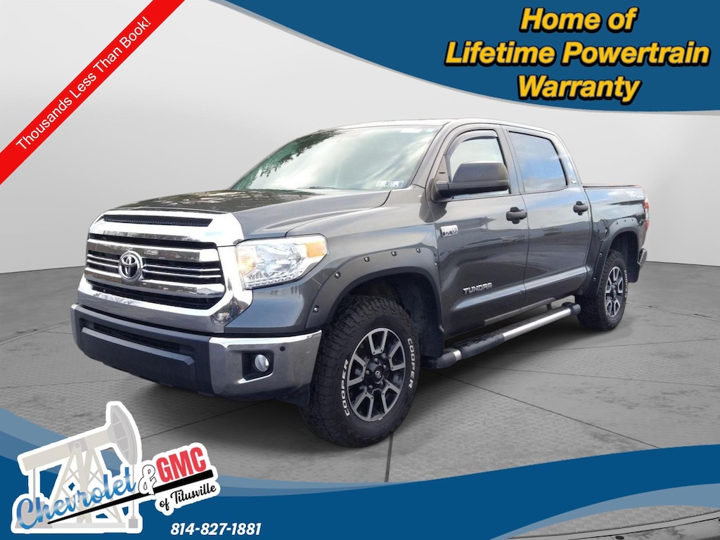 At Chevrolet and GMC of Titusville we believe that your car buying experience should be an enjoyable one. Its our goal to exceed your expectations in every way so that each and every time your family needs a car or truck, you know exactly where to go. We set out to accomplish that by staying firmly rooted in our values of integrity and professionalism in order to provide you with a truly superior customer service experience. A proud member of the Dean Auto Group, were sure youll find the quality new or used vehicle you want from the manufacturers you love! Find exactly what youre looking for at a price that makes you smile... This 2016 Toyota Tundra Truck TRD Pro has a beautiful Magnetic Gray Metallic exterior with Graphite interior. This vehicle has 81,534 miles has been thoroughly inspected by our factory trained service technicians and has been fully reconditioned for immediate delivery. We're happy to provide this Tundra Truck's CARFAX vehicle history report upon request as well. IMPORTANT PACKAGE INFORMATION SR5 Safety and Convenience Package ($970 value)Blind Spot Monitor with Rear Cross Traffic AlertColor-Keyed Rear BumperFront and Rear Parking Assist SonarTRD Off Road Package ($2,030 value)Fabric Seat Trim with TRD Off-Road PackageP275/65R18 Michelin LTX All Terrain Tires18" X 8J Split 5-Spoke TRD Off-Road Alloy WheelsTrail-Tuned Bilstein Shock AbsorbersEngine and Fuel Tank Skid PlatesTRD Off-Road GraphicsSR5 Upgrade Package ($1,220 value)CompassHomeLink Universal TransceiverAnti-Theft Immobilizer with AlarmAuto-Dimming Rearview MirrorFront Bucket SeatsUrethane Tilt/telescopic Steering Wheel38 Gallon Fuel Tank Capacity Comfort Leather seat upholstery - superior sitting. Theres more class in the cabin with leather seat upholstery. The leather material is luxurious to the touch, offers a distinctive look, and is easy to clean. Put a little luxury behind you with leather seat upholstery.Convenience Cruise control with steering wheel mounted controls. Set it and forget it. Road trips used to be stressful, until cruise control set the pace. Simply set the desired speed using the steering wheel mounted controls and it will maintain that speed without driver intervention. This can help minimize driver fatigue and improve overall fuel economy. Resting your right foot is right at your fingertips thanks to cruise control with steering wheel mounted controls.In-car Entertainment Touchscreen - flat out convenient. Say goodbye to the twists and turns of your daily drive...were talking about buttons and knobs of course! Touchscreen allows you to control certain features with your fingertips, making it easy to use while also providing information at a glance. With touchscreen, your fingerprints will be all over your drive.Safety and Security Rear camera - Watching your back! The rear camera helps you see obstacles and hazards you otherwise couldn't by showing enhanced images of what is behind you. The rear camera is an extra set of eyes that's both convenient and safe. Brake assist - Stop right there. Something jumps out into the middle of the road and you need to stop now! With brake assist, you will. It uses the speed of the brake pedals travel to sense panic braking, then applies all available power to boost your stopping power. Brake assist can stop the accident before it is one. We value-price our vehicles to assure our customers get an easy & notable car buying experience. With every New & Pre-Owned purchase you become part of our Chevrolet and GMC of Titusville family, and being a family member has benefits: 1. Complimentary PA State Inspections for the Life of the Vehicle (dealer covers inspection fee, customer responsible for applicable sticker fees) 2. $100 gift card 3. Lifetime Powertrain Warranty (some exclusions apply) 4. Complimentary 21-point inspection and safety check for the life of the vehicle with ANY service appointment *Valid for vehicles purchased after 1/1/2025. **Offers not redeemable for cash. Due to heavily
